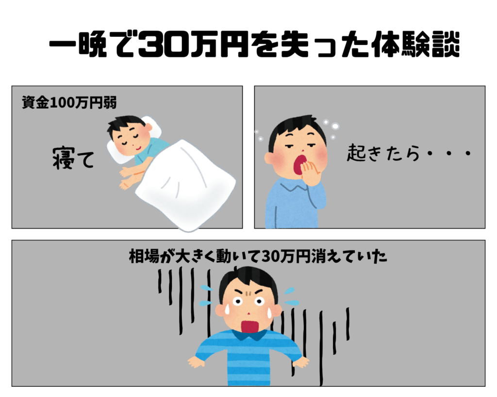 これらが重なったことで、一晩で30万円の損失という大きなダメージにつながった可能性が非常に高いです。